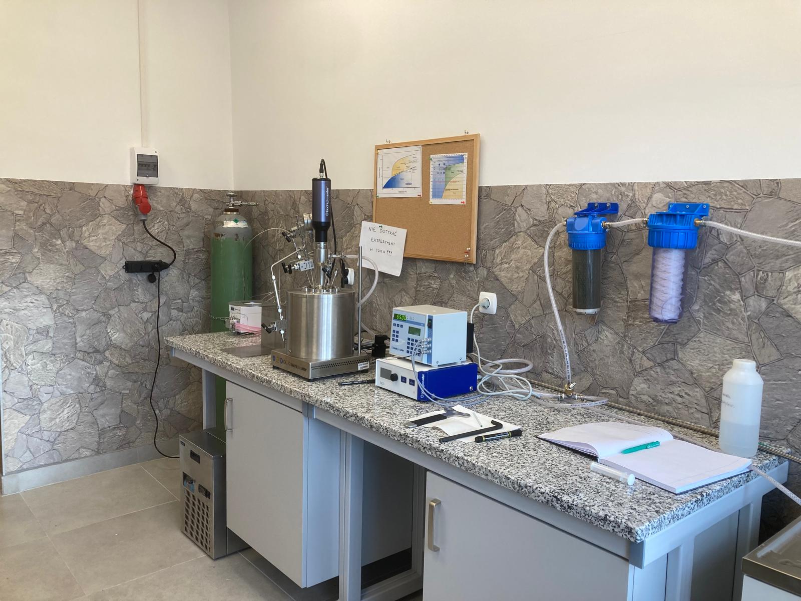 Laboratorium mineralnej karbonatyzacji powstało w ramach realizacji projektu NCN OPUS nr UMO-2021/43/B/ST10/01594 pod nazwą "Zachowanie pierwiastków metalicznych w czasie karbonatyzacji skał ultramaficznych i związanych z nimi odpadów górniczych i hutniczych". Jego głównym celem jest prowadzenie badań nad mobilnością metali w trakcie wiązania CO2 w wyniku jego reakcji ze skałami i odpadami przemysłowymi. Eksperymenty realizowane są w nowoczesnym reaktorze ciśnieniowym Novoclave Typ 3E o pojemności 600 ml, produkcji firmy Büchi, umożliwiającym pracę w szerokim zakresie warunków — od próżni do 500 bar oraz od -10 do 500 °C. Reaktor wyposażony jest w napęd mieszadła ze zintegrowanym sprzęgłem magnetycznym Cyclone 075, pozwalającym na bezstopniową regulację prędkości obrotowej w zakresie 0–3000 rpm. Układ został dodatkowo zintegrowany z pompą dozującą CO₂ firmy Knauer, co umożliwia precyzyjne sterowanie ilością i ciśnieniem gazu wprowadzanego do układu reakcyjnego. Dzięki precyzyjnej kontroli parametrów ciśnienia, temperatury i mieszania, laboratorium umożliwia symulację warunków mineralnej karbonatyzacji oraz badanie kinetyki i mechanizmów reakcji prowadzących do trwałego magazynowania CO₂ w postaci stabilnych węglanów.